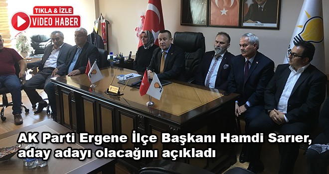 Adalet ve Kalkınma Partisi (AK Parti) Ergene İlçe Başkanı Hamdi Sarıer parti binasında düzenlenen toplantıda yerel seçimlerde belediye başkanlığına aday adayı olacağını açıkladı.